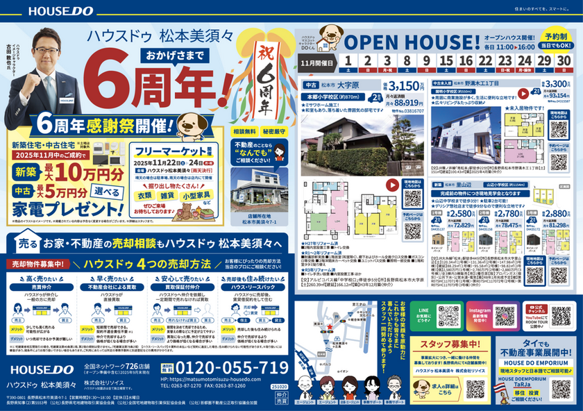 11月はハウスドゥ 松本美須々 6周年!🎊✨ そこで、6周年を記念して フリーマーケット を開催いたします♪ ■日時 2...