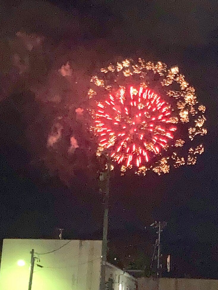 日曜日の夜、仕事帰りに花火が上がっていました。