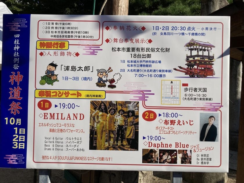 四柱神社の神道祭は毎年10月1日・2日・3日に開催されるそうなので、